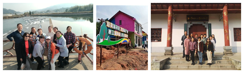 第二天一早来到了地处湘赣边陲,山青水秀,人杰地灵,素有革命老苏区之称的小河乡。参观了红十八军组建地小河革命历史陈列室,来到了浏阳市政府投资千万的沿河游道。清澈的浏阳河上筑有的两坝,上有“鱼鳞坝”,下连“叠水坝”,河上有廊桥,田中油菜花开的小河乡,一片乡村振兴美景全部映入眼帘。